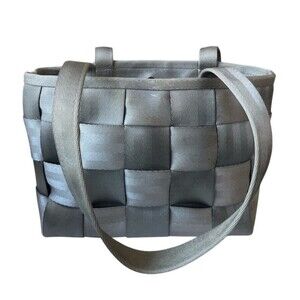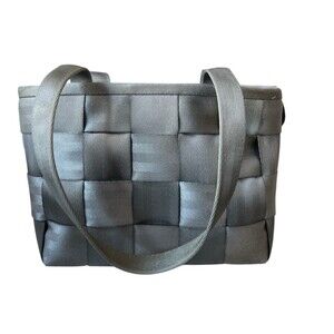 The Harveys Original Seatbelt Bag Vintage Red Shoulder Bag is a medium-sized tote with a rectangular shape and a snap closure. It features double handles in gray, silver hardware, and a lined interior with inner pockets. Made with nylon and seatbelt material in a vibrant red exterior color, this vintage Y2K style bag is perfect for travel and casual occasions. This United States-made bag from the Harveys Seatbelt product line adds a pop of color and functionality to any outfit.