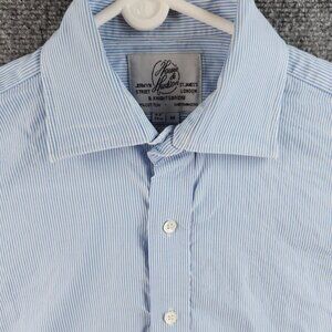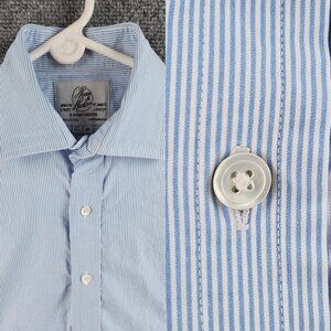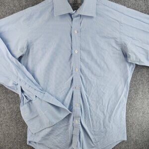 Harvie & Hudson 15.5 Slim Medium Blue Striped Long Sleeve Button Up Shirt Cotton