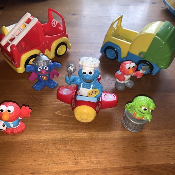 Hasbro 2010-13 Sesame Street Workshop Airplane,fire truck, & stroller + figures.