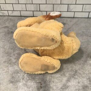 Color/Details: Tan and brown plush with white inner ears, green eyes, pink blush cheeks, and a pink patterned bow on the head