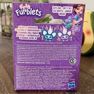 Bright and playful Furby Furblets by Hasbro. Features vibrant purple with multicolor accents. Perfect for interactive fun. New in box, still sealed.