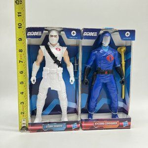 This Hasbro G.I. Joe Action Figure Lot features the popular character Snake Eyes, along with other fan favorites like Roadblock and Storm Shadow. The figures are made of durable plastic and come in their original packaging, unopened and in like-new condition.