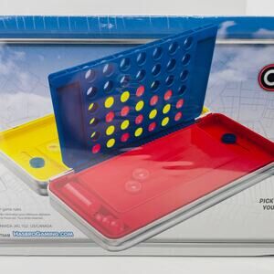 New in factory packaging. Full Connect 4 gameplay in a portable case. Players can pause a game and pick up where they left off. Slide the grid upward to easily release all the discs after each game. Please let me know if you have any questions. Thanks for looking!