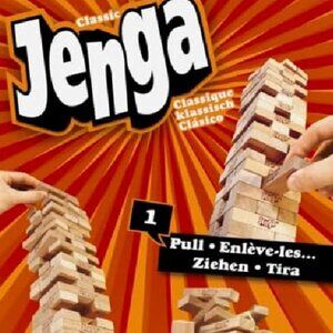 Description and Features: Hasbro Jenga Classic Refresh Game with Genuine Hardwood Blocks Stacking Tower Game for 1 or More Players. Pull out a block without crashing the stack to win at Jenga.