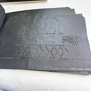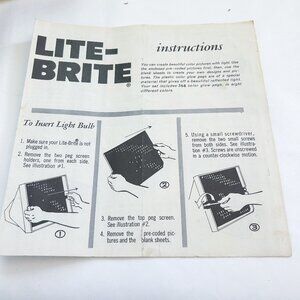 Hasbro Lite-Brite Set Vintage. The Lite-Brite comes with a lightbulb, instructions, a bag of colored pegs, 6 unused picture templates, 11 used picture templates and 9 black papers to make your own picture. Comes in original box. The back of the Lite-Brite has some stains on it, but it has been cleaned. See all photos for details.