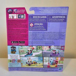 New in package Hasbro Littlest Pet Shop Pets In The City City Rides set. Comes with LPS #73 Toodles Tortuga Turtle & #74 Lolly LapinFluff Rabbit. Back of package marked 2015. Packaging is in good shape, shows light signs of storage/age.