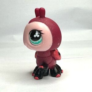Hasbro Littlest Pet Shop (LPS) RETIRED Ladybug #629, Red body, black legs, and ligth red toes. Wings are light red with black spots. Pale pink face with cyan colored "clover" eyes. Features a blue magnet on bottom.