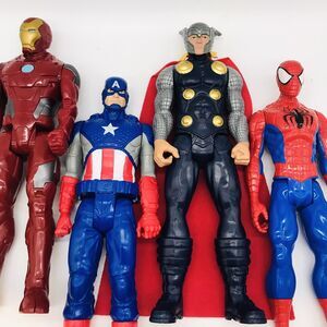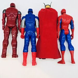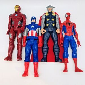 Hasbro Marvel Legends Lot of 4. Includes Spider Man, Thor, Iron Man and Captain America. These 12" Action Figures measure just under 12 inches. They are pre-loved and will be carefully packed in new box.