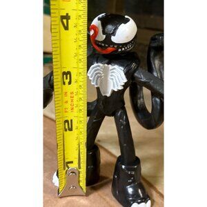 A meticulously crafted Venom action figure featuring intricate black and white detailing with a signature red tongue, embodying the symbiote character's iconic design for Marvel comic and movie enthusiasts.