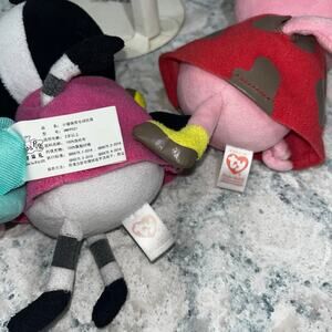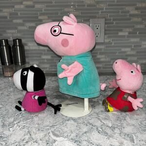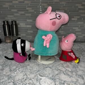 Hasbro Peppa Pig Daddy Pig 9" hand puppet, 6" TY Beanie Babies muddy puddles Peppa and Zoe Zebra. In excellent condition from a smoke free home.