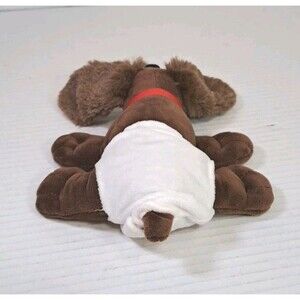 Hasbro Pound Puppies Brown Plush Dog 8" w/ Red Collar & Diaper Vintage Plushie