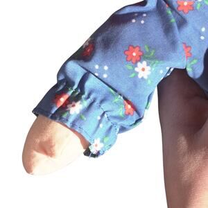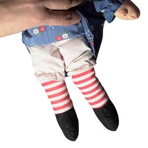 Hasbro Raggedy Ann Doll Navy Dress Floral Apron Red Yarn Hair Collectible VTG