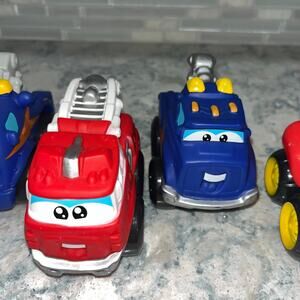 Hasbro Tonka Lil' Chuck & Friends 4" Boomer Fire Truck, Handy Tow Truck, Digger Bulldozer, and Rowdy Tractor. 2.5" soft rubber car and diecast Maisto. In great condition from a smoke free home.