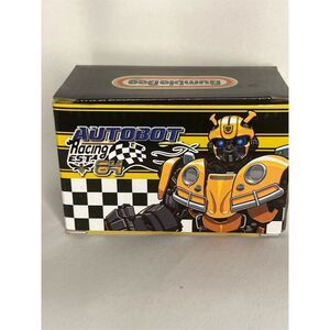 This Hasbro set features the exclusive Bumblebee Racing and Optimum Oil style in a vibrant color. Made from synthetic materials, it is an original product from the post-1940 era. The set includes two units and is new in box. Keywords: Hasbro, Bumblebee, Racing, Optimum Oil, vibrant, synthetic, exclusive, original, post-1940, new in box.