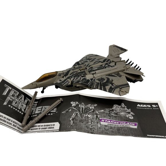 This collectible Starscream action figure from Hasbro's Transformers series features intricate details and two removable weapons, designed for ages 5 and up.