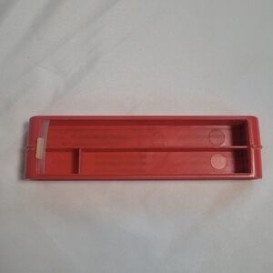 Hasbro Vintage Red Roll Top Pencil Case. Made in USA. In great preowned condition. No cracks and very minimal scratches.