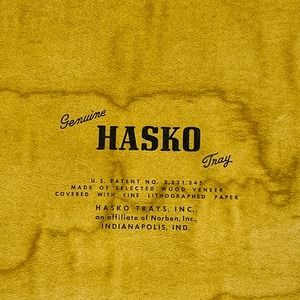 Hasko Trays made of Wood Veneer, Covered With Lithograph Paper featuring three flying Ducks from the 1940's or 1950's. There are a total of 12 trays available in varying condition. All have signs of use. Feel free to ask if you have any questions.