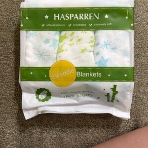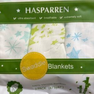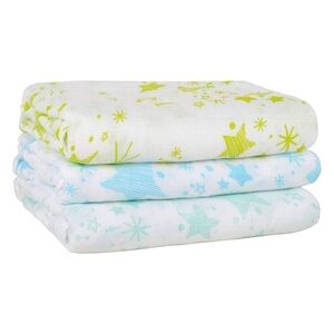 Soft swaddle blankets with green and blue star patterns. Made from 100% viscose bamboo.
