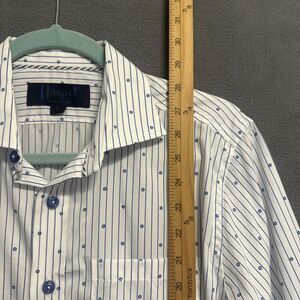 Haspel Co New Orleans Button Up Dress Shirt Men Size Small White Blue Geometric