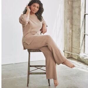 Hass California Avocado Baby Alpaca Ribbed Wide-Leg Pant Size Small