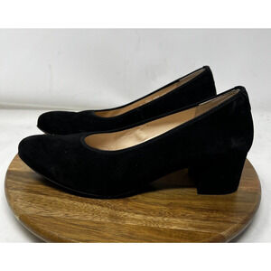 Hassia Shoe Womens 8 Black Suede Block Heel Pump Slip On