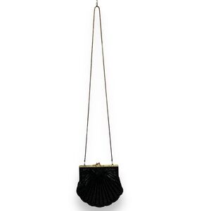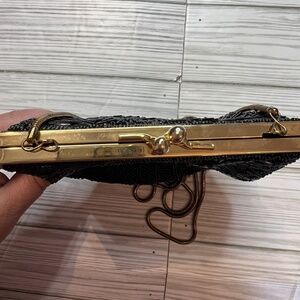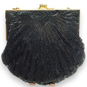 Hasting & Smith Black Beaded Sequins Clamshell Evening Purse Gold Accents