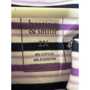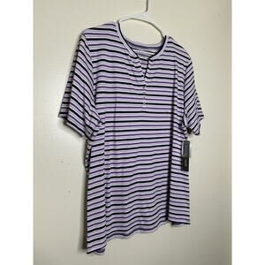 Hasting & Smith Purple Stripe Cotton Tee Size 2X NEW V-Neck With Buttons