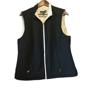 Hasting & Smith Quilted Vest Black Sleeveless Full Zip Gold Detail