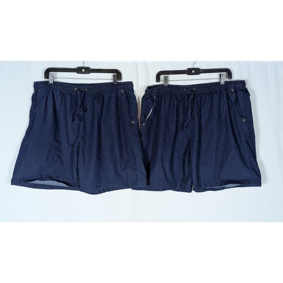 Hasting & Smith Shorts 2X Womens Blue Chambray Pull On Drawstring Waist Lot of 2