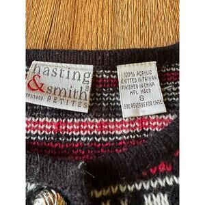 ❥ Description - Super cute chunky red, white, & black patterned cardigan sweater! Brand is Hasting & Smith, size small.