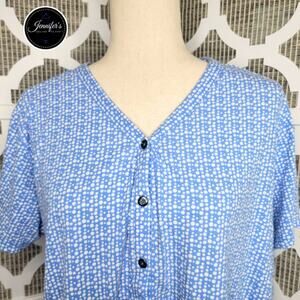 Hastings & Smith Blue and White V Neck Short Sleeve Dot Pattern Top Size 1X