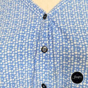 Hastings & Smith Women's Blue and White V Neck Short Sleeve Dot Pattern Top