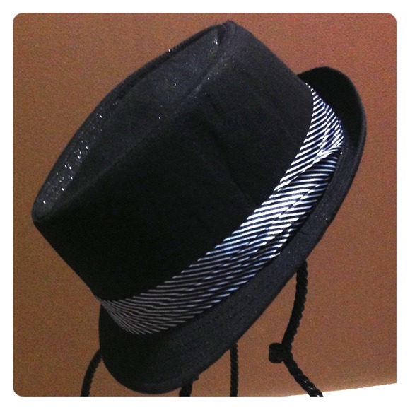 Black with silver glitter and stripe band fedora hat