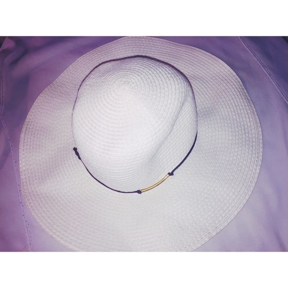 White floppy cute beach hat with brown around it and a gold essential. Brand new never worn!