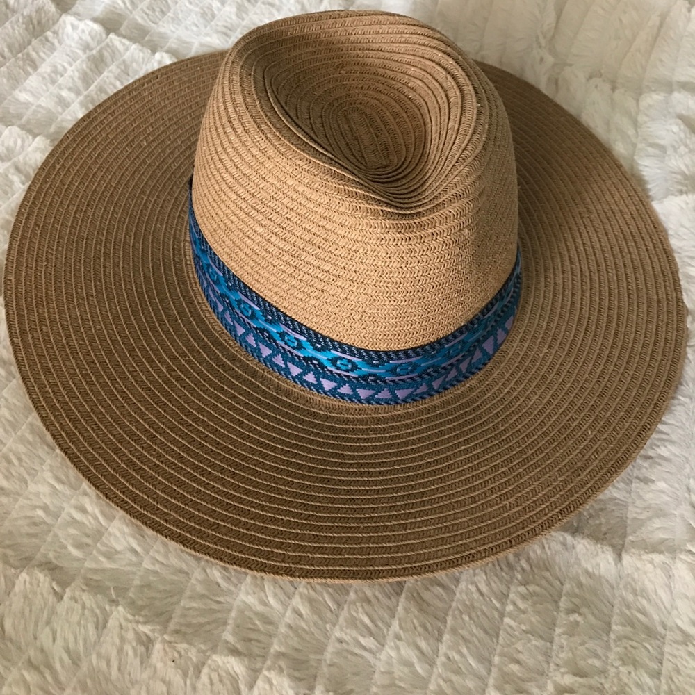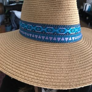 New LuLu hat. Never worn. Blue and purple Aztec pattern ribbon. Great for the beach or garden parties!