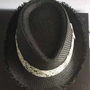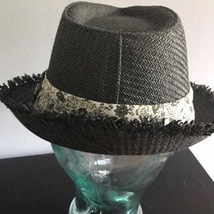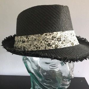 Black straw hat with tone on tone Floral band. Never worn. So cute!