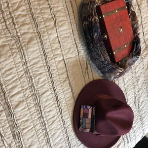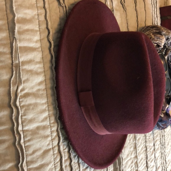 Burgundy hat made for fashion! Only been worn once or twice. Mint condition. Can either be worn dressy or casual! Either which way definitely makes a statement.