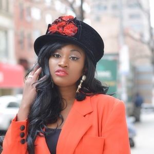 Black top hat velour and red rose on the side 1970-1979
