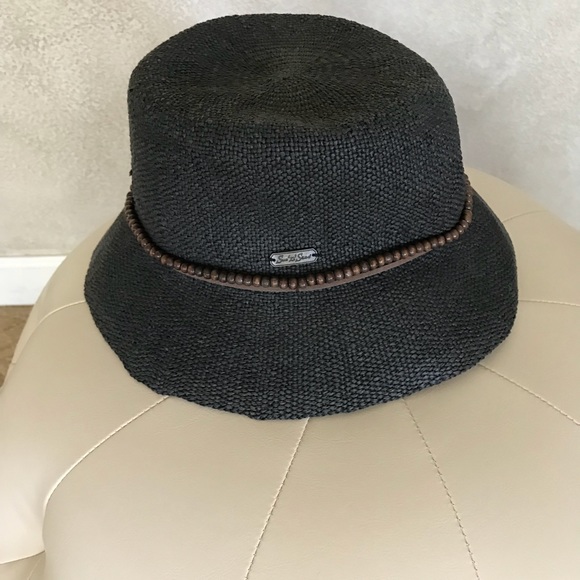 Off black hat with brown beading