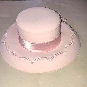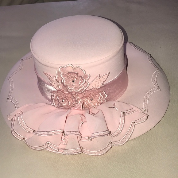 Pink hat with embellishments and bling.