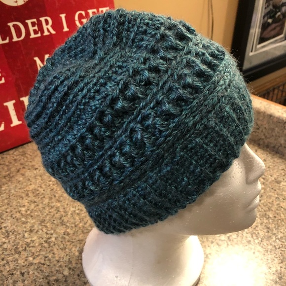 Crocheted winter hat. Great quality. Adult size. Teal in color.