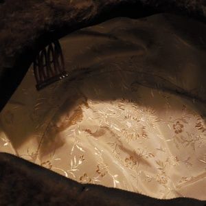 Unisex fur like hat Brown color. Beautifully lined with Combs attached. vintage hat, probably from the fifties. Opening Measures approximately 6.5 inches. Hat is approx 2.5 inches tall.
