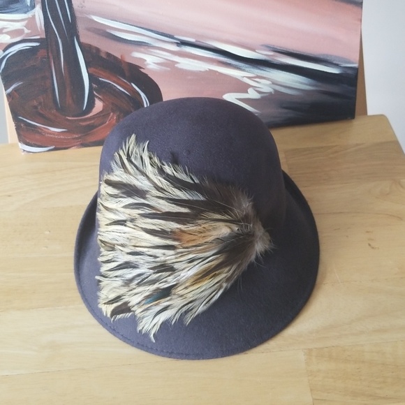 Grey feathered wool hat. Great for Sunday go to meeting.....