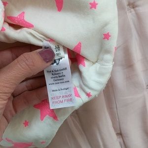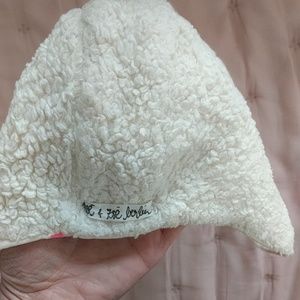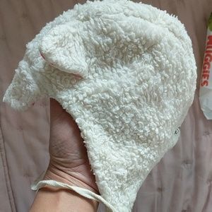 Winter hat size 12-18 months cream color with hot pink stars in great used conditions. Washed once with organic detergent. Offers are welcome.