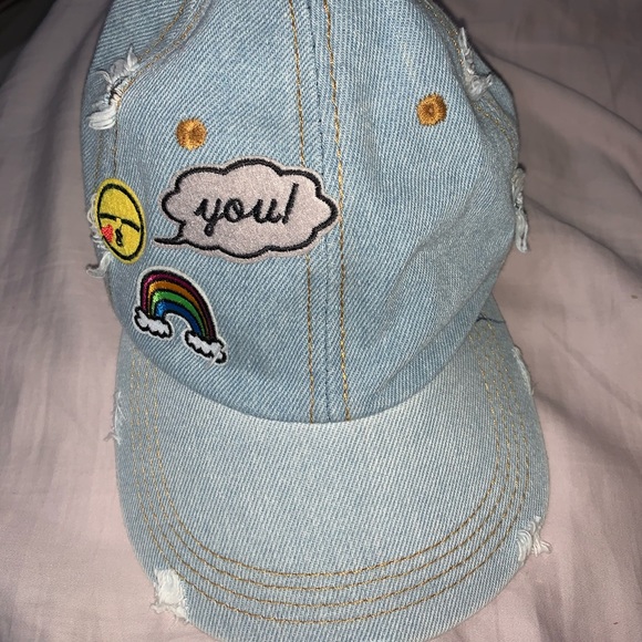 Baseball denim hat with cute pictures on it. And adjustable strap. Plus extra small surprise gifts :)