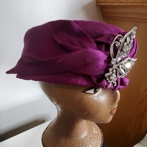 Purple silk hat with rhinestone embellishments