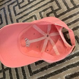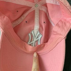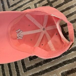 Pink soft Yankees hat for women. Slight makeup stains on front inside cider piece and small stain on back yankee logo, all shown in photos.