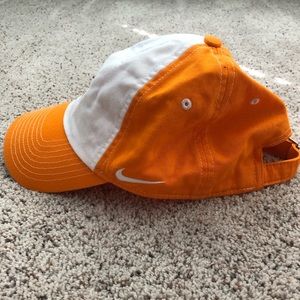Super cute Tennessee Volunteer hat! It is orange and white and has a T on the front and a Nike sign on the side! It also has a checkered state of Tennessee on the bill! It is so cute and festive!