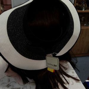 Black and White hat has a bow in back,velcro closure. Also a Brown and Tan hat. One of each.