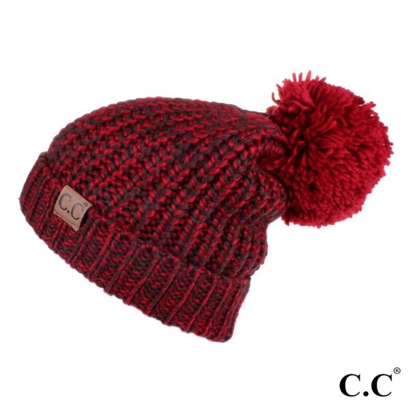 Red any taupe color hat bigger pom soft and cozy
